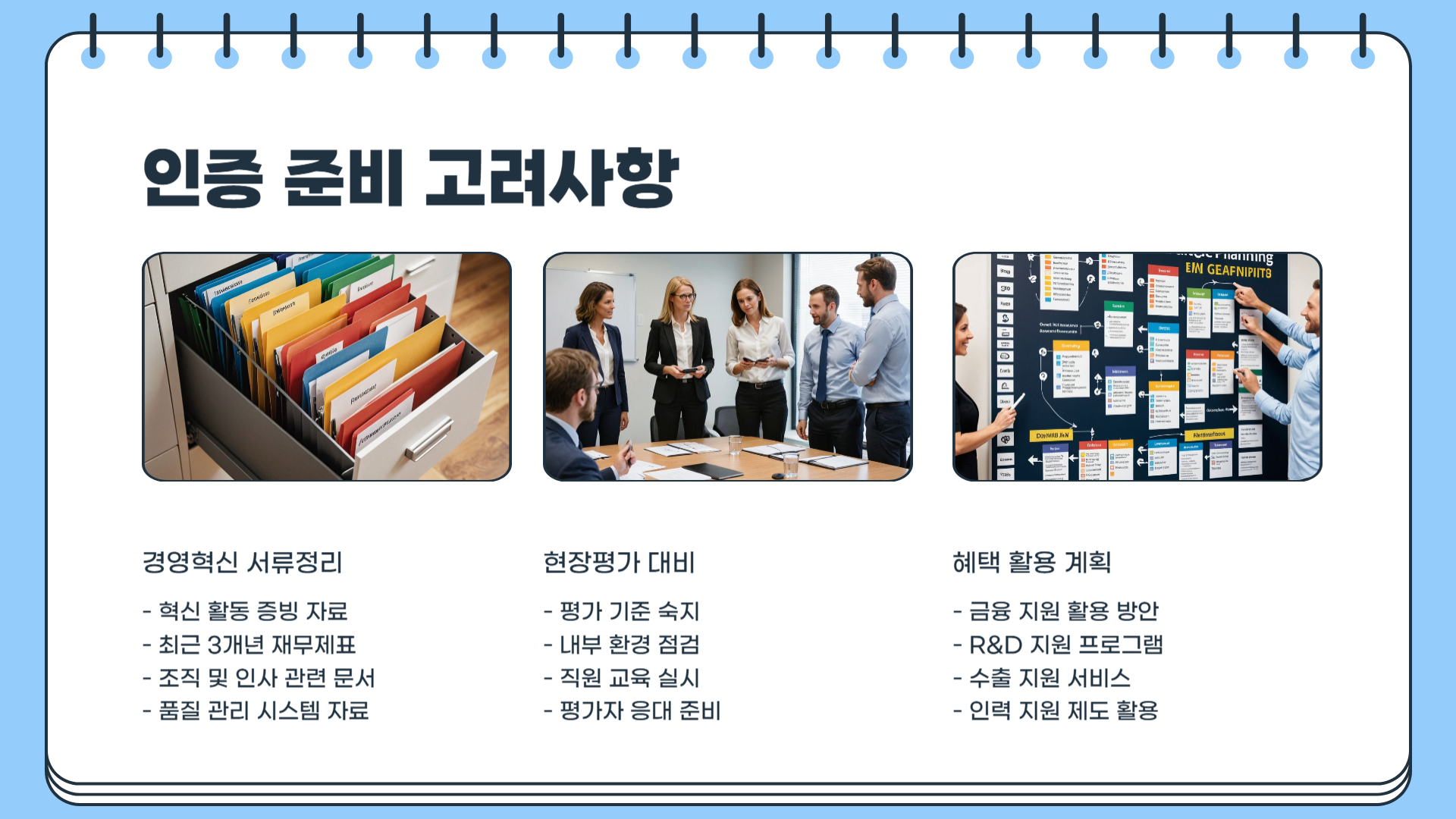 - 기업의 경영혁신 활동을 증빙할 수 있는 자료를 충분히 준비해야 합니다.