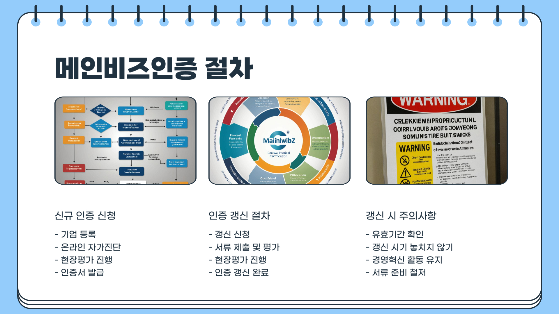 메인비즈인증은 3년마다 갱신해야 합니다. 인증을 유지하려면 다음 절차를 따라야 합니다.