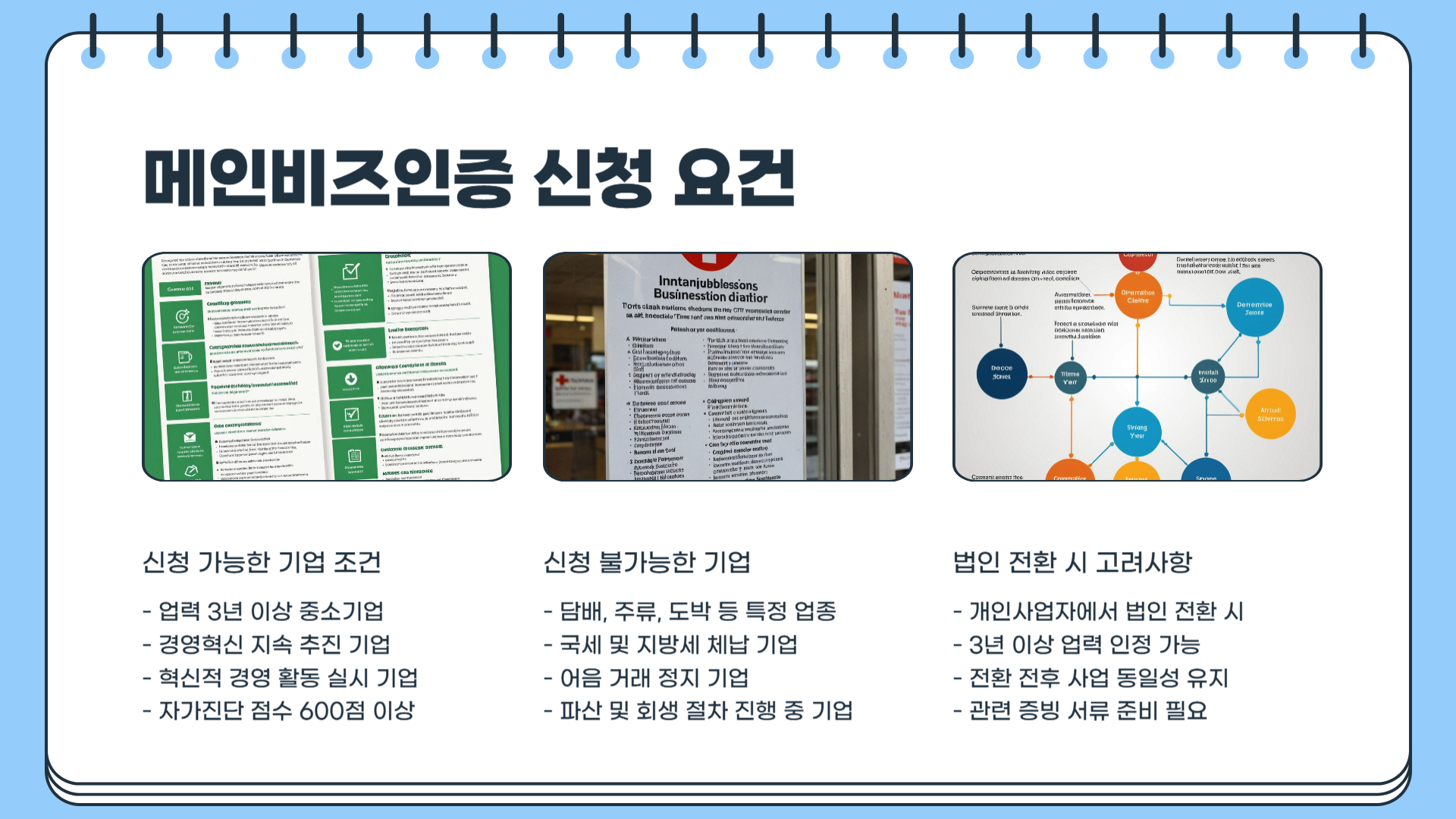 메인비즈인증을 신청하거나 갱신할 때는 다음 사항을 철저히 준비하는 것이 중요합니다.